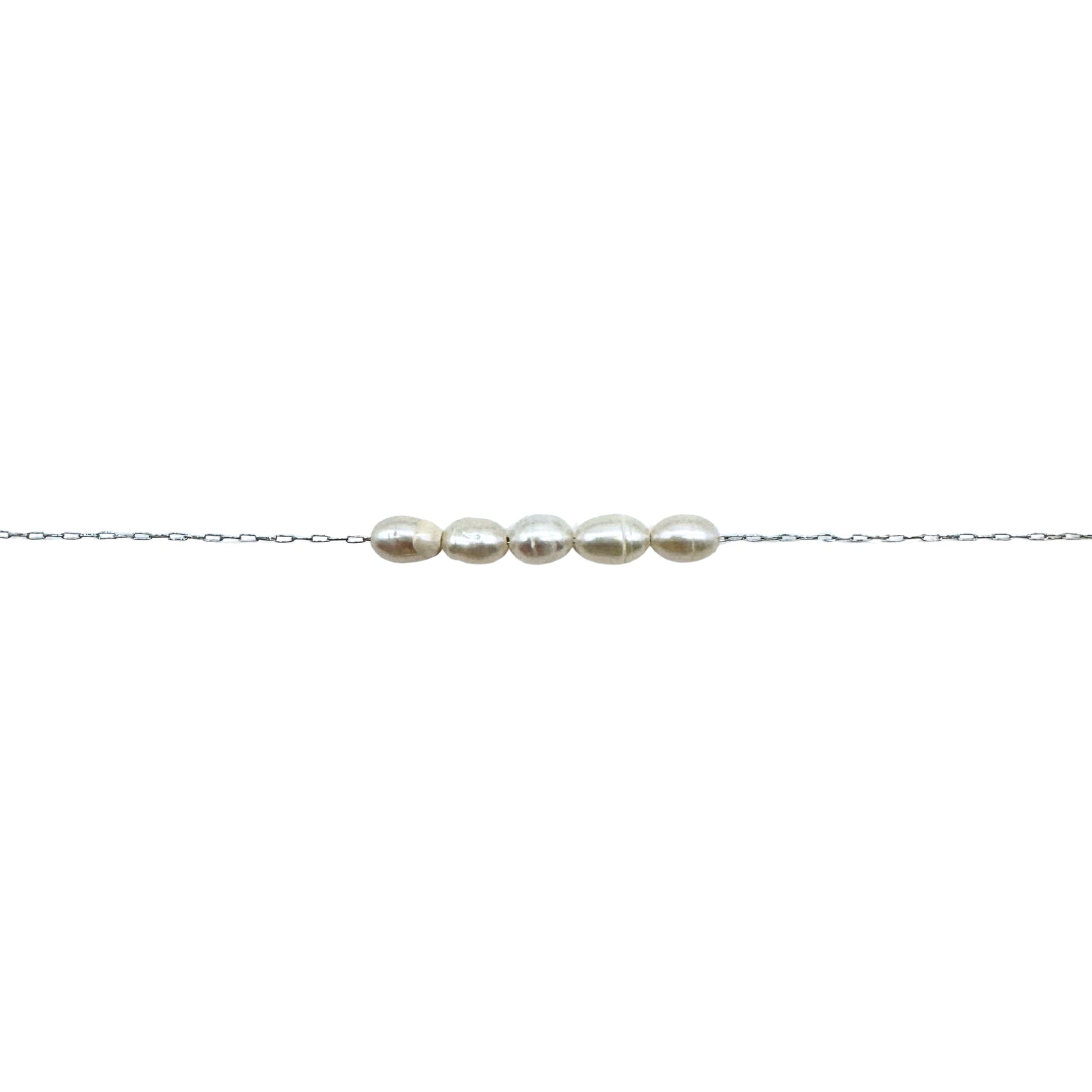 • Pearls: Five 4 to 5mm white freshwater pearls, rice shape