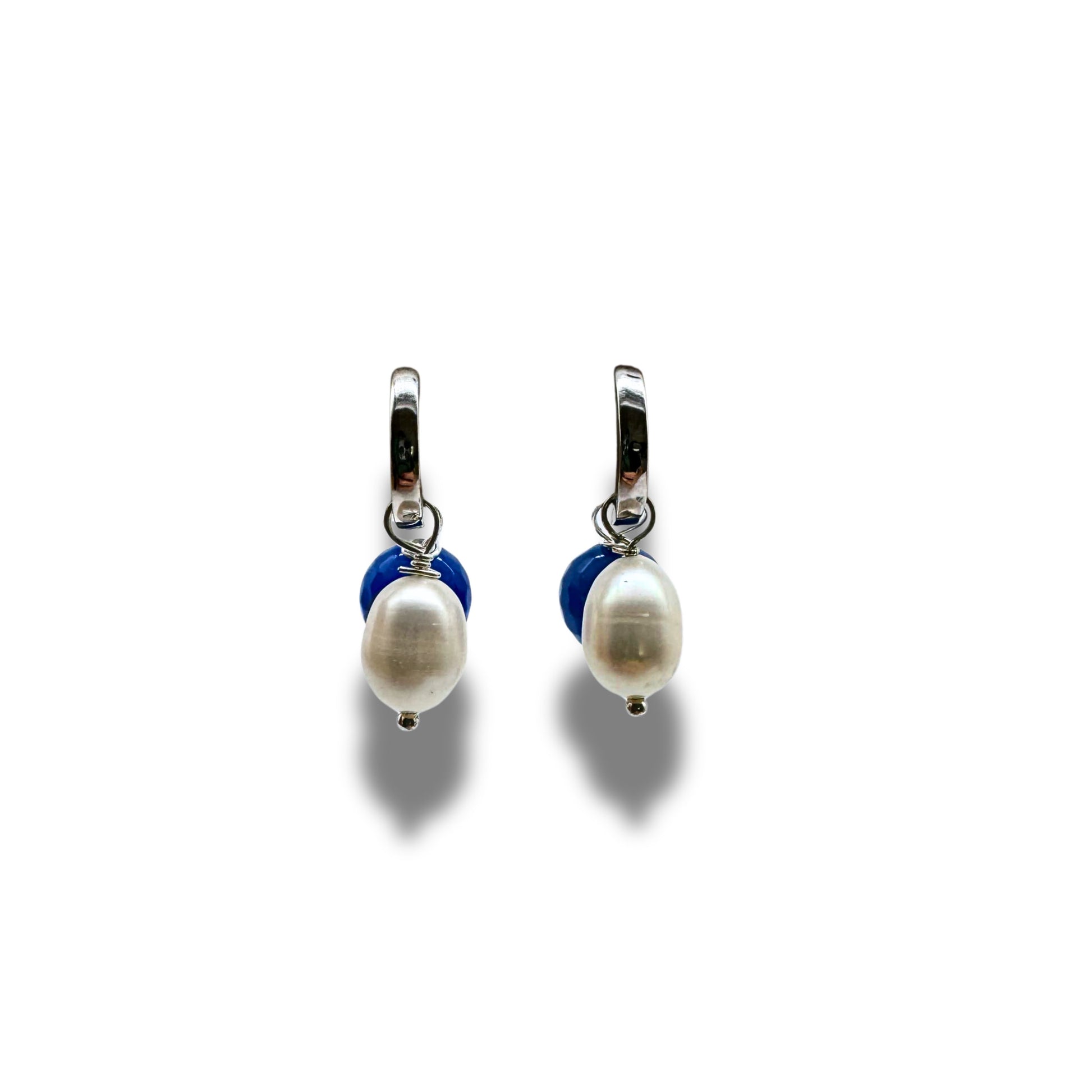• Charms: White freshwater teardrop pearl (9mm) + round blue agate gemstone (10–12mm)